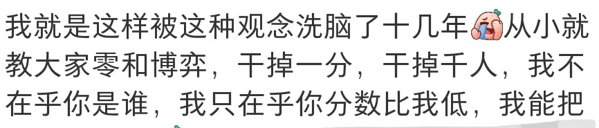 本来是一个共同学习、共同面对知识和开阔人生的校园生活,但在高度竞争的氛围下,却变成了一个“零和博弈”的赛场,身边的每个人都是潜在竞争者。