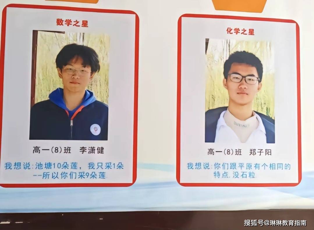 喜欢用谐音梗来调侃同学的学霸不是少数,最令人印象深刻的,当属高一八班的这两名男同学,一个用“你们菜九朵莲”来嘲笑其他同学“菜就多练”,另一个是用“差生如平原”来调侃其他同学“没实力”。
