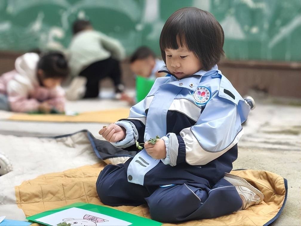 活动中,小班幼儿步入小学生态菜园。在这里,孩子们不再是图册上的观察者,而是自然的参与者。他们亲手采集落叶、种子等,在创意拼贴活动中,将这些自然材料转化为艺术作品,实现了从观察到表现、从感知到创造的关键经验发展,初步建构起与自然世界的审美联结。
