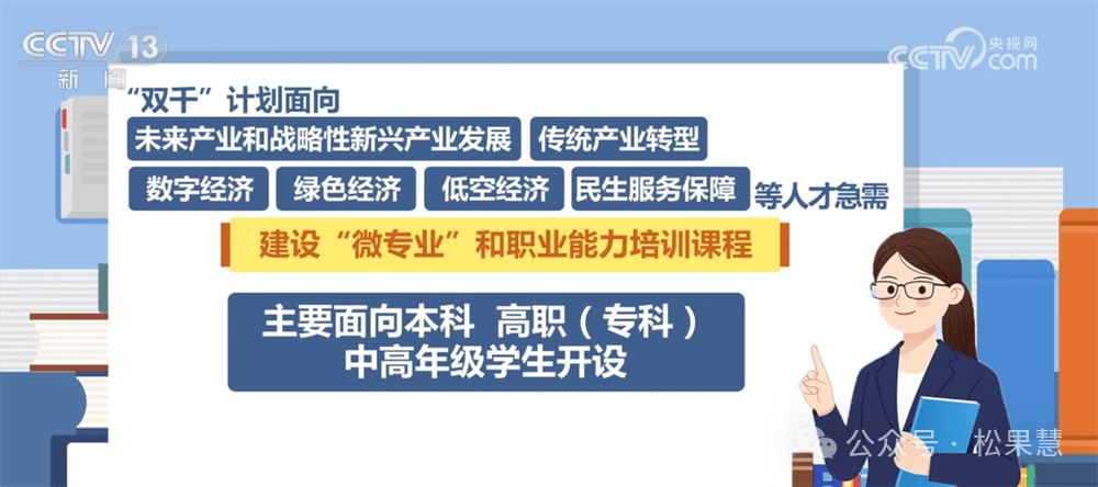 “双千计划”是教育部2025年实施的高校学生就业能力提升“双千计划”,推动全国范围内开设1000个“微专业”(或专业课程群)和1000个职业能力培训课程。“双千”计划面向未来产业和战略性新兴产业发展、传统产业转型、数字经济、绿色经济、低空经济以及民生服务保障等人才急需,建设“微专业”和职业能力培训课程,主要面向本科、高职(专科)中高年级学生开设。