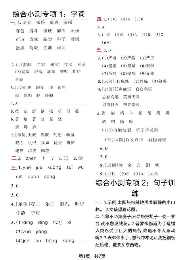 答案部分附带详细解析,不仅给出结果,还拆解解题思路,比如阅读理解教孩子抓关键句、习作提示核心立意方向。孩子练习时能精准对接考试难度,家长辅导也能明晰考情重点,不用再四处搜集零散资料,扎实夯实期末复习根基。