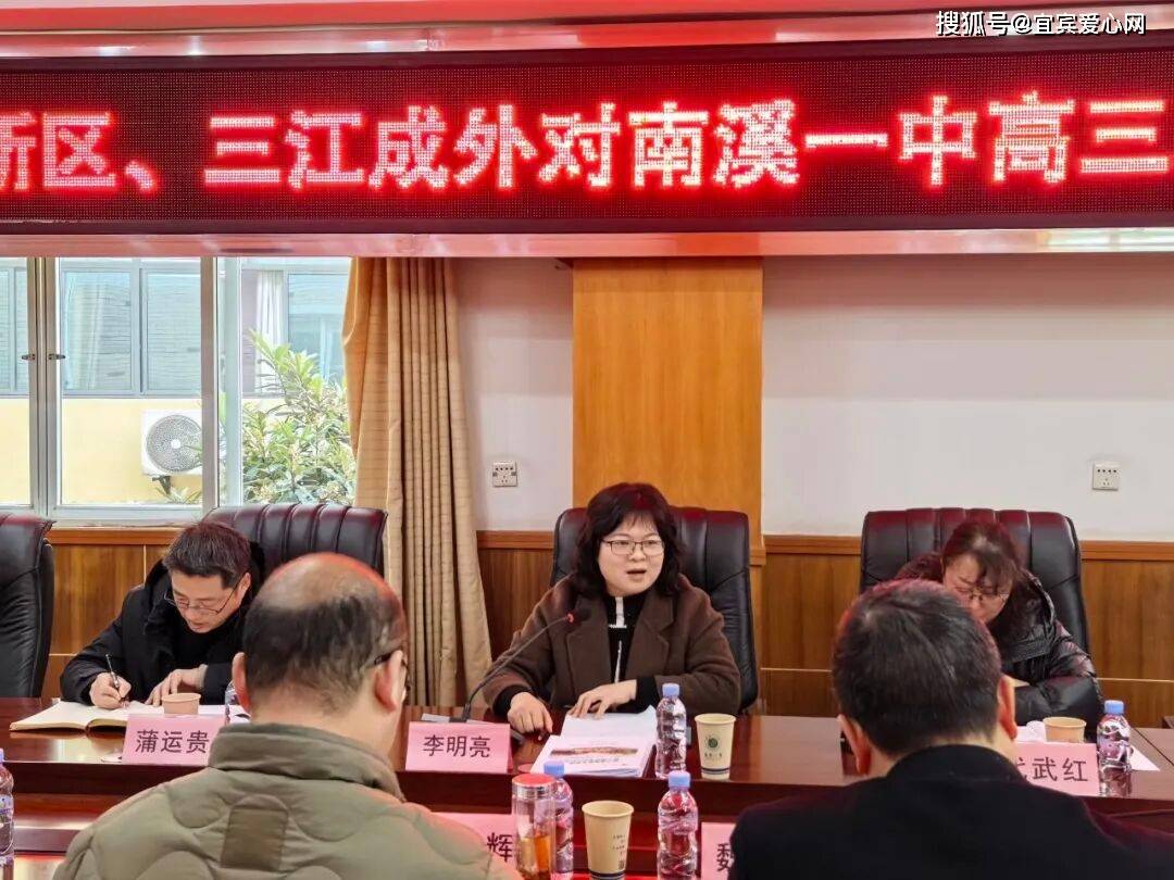 12月11日,三江新区社会事业局组织专家组,在三江新区社会事业服务中心主任李明亮的带领下莅临南溪一中,围绕高2023级高考备考工作开展交叉视导活动。此次视导是落实宜宾市教科所有关文件精神、打破区域教育壁垒的具体举措,通过实地查看教学进度、交流备考经验,旨在破解共性难题、提升复习教学效率,为高三备考工作注入协同共进的新动能。