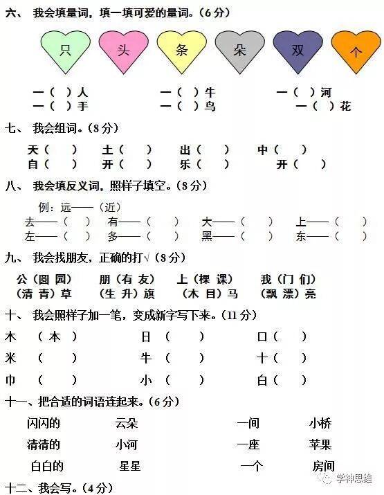 前两期所发1~6年级语文期末测试卷,受到家长朋友的积极收藏和转发,部分家长向我索要一年级的精编答案版,见于此种原因附答案一同上传。希望对孩子的复习带来帮助,为家长的辅导带来便利。