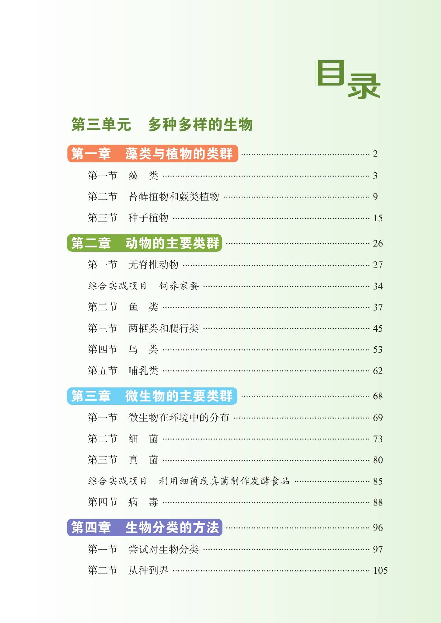 一:2024版最新鲁科版初中生物(五四学制)六年级下册电子课本教材目录: