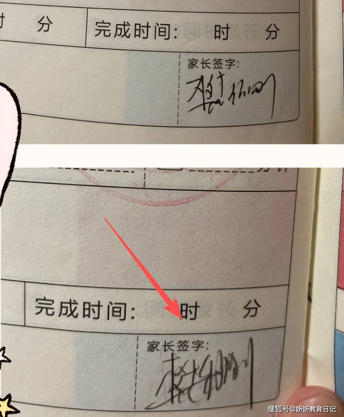 而且越描越烂。如果说上面这些错误都已经千奇百怪五花八门,不如来看看这位妈妈。她发现一年级的儿子有一天仿照家长签字,老师就一眼看得出来。