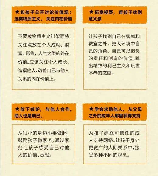 家长通过自己的行为传递的信号,要比空洞的说辞更为有力:成功不等于无止境的向上爬,而是过一种符合自己价值观的生活。