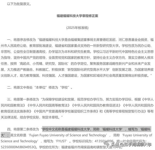 2026年1月6日,福建省教育厅正式核准《福建福耀科技大学章程修正案》,标志着这所由著名企业家曹德旺主导创办的新型大学完成了制度建设的里程碑式跨越。这份历经系统性重构的新章程,不仅为学校未来发展提供了制度保障,更折射出中国高等教育改革创新的时代脉搏。