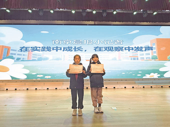 在南工大实小,被评为百优小记者的刘城翰分享了他成为南京晨报小记者以后的收获。他说自己参加了很多场活动,从校园走向城市各个地方,小记者们用脚步丈量南京的温度。在真实场景中锻炼胆量与表达,他学会了用眼睛发现故事,用心灵感受世界。非常享受这种体验。