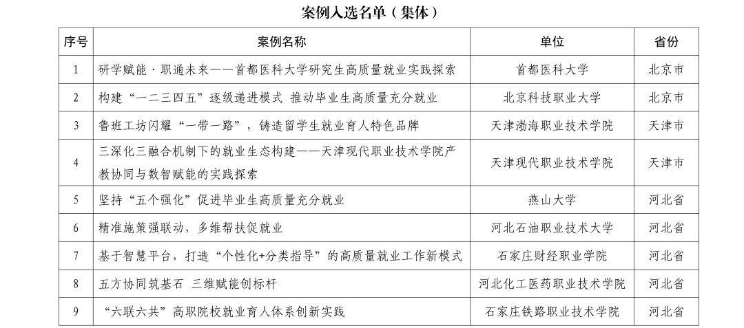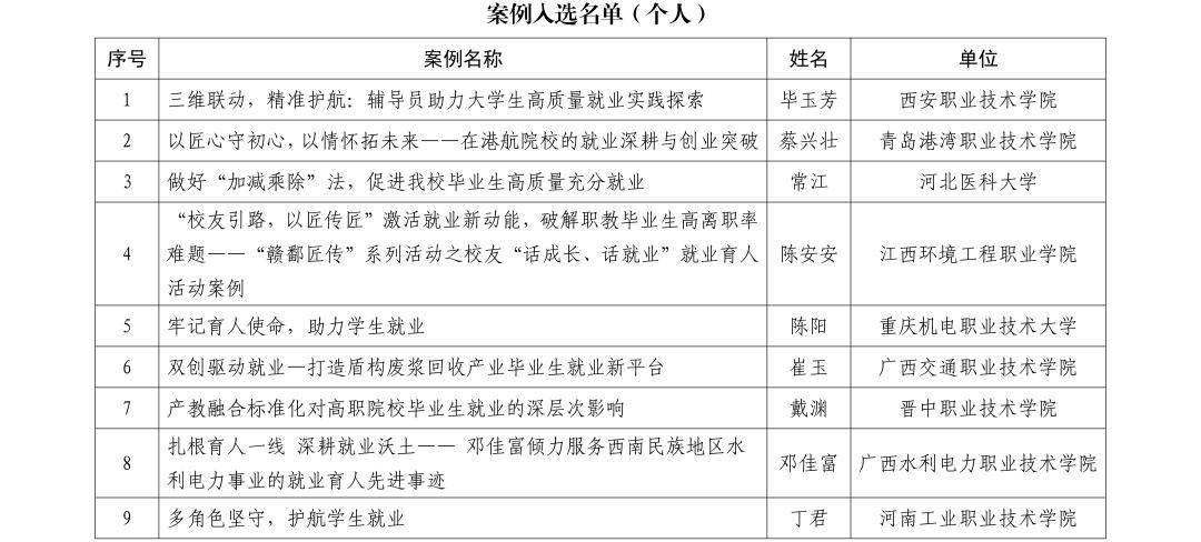 关于公布2025届毕业生就业创业工作典型案例入选名单的通知