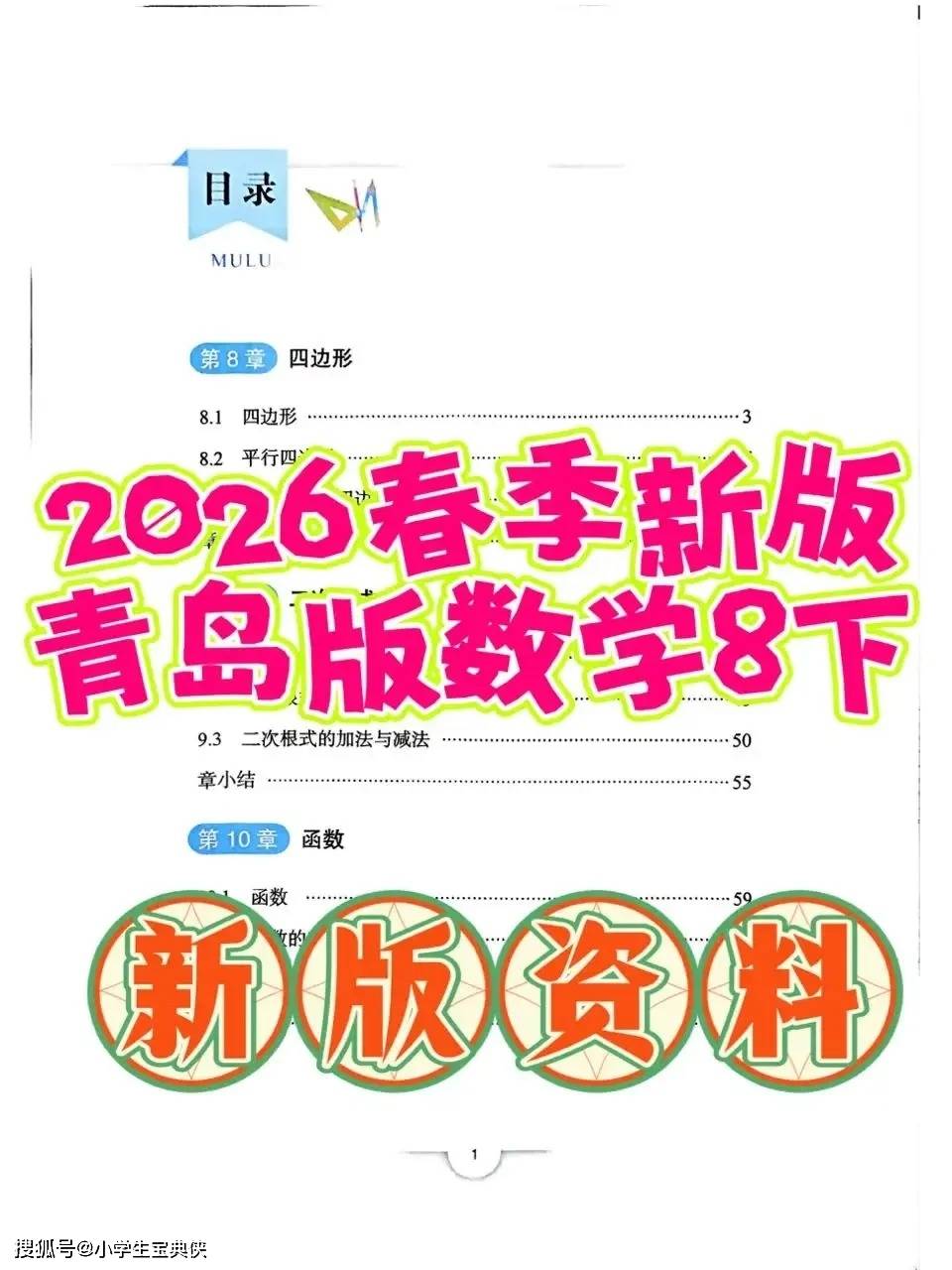 今天为大家分享:青岛版 2026 春八年级下册数学教材,以 “四边形 — 二次根式 — 函数” 为核心脉络,构建了从平面几何到代数函数的完整知识体系,是学生实现数学思维从具象到抽象进阶的关键载体。