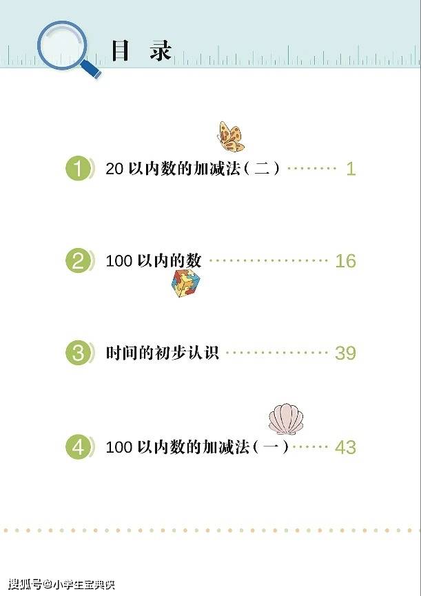 “100 以内的数” 单元则引导学生认识更大的数,通过数小棒、摆方块等直观操作,理解数的组成与读写。学生将学会用 “十” 和 “一” 表示数的构成,如 35 由 3 个十和 5 个一组成,并能比较数的大小,为后续加减法运算奠定基础。