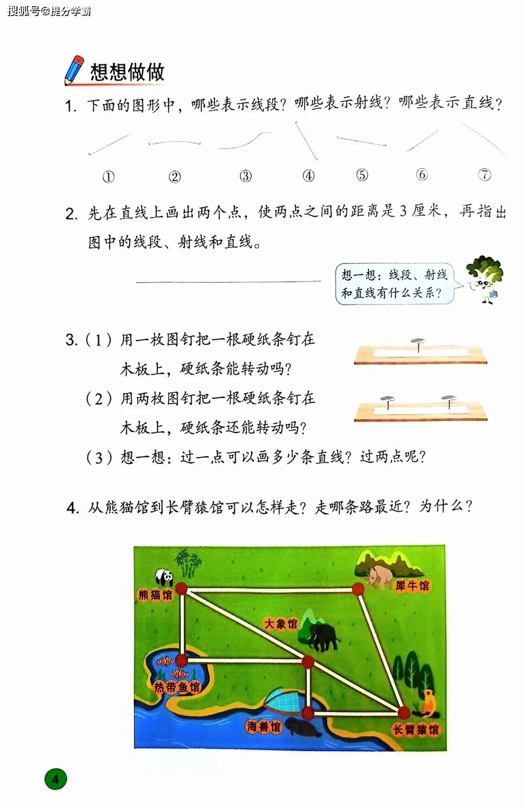 这套教材的设计亮点在于 “问题驱动” 的学习模式。每个知识点都以真实问题为起点,比如 “从熊猫馆到长臂猿馆走哪条路最近?”“怎样用无刻度直尺和圆规画等长线段?”,引导孩子主动思考、动手实践。同时,教材融入了跨学科元素,如在 “年、月、日” 单元引入农历知识,在 “垃圾分类” 专题中渗透环保教育,让数学学习不再局限于课本,而是成为认识世界的工具。