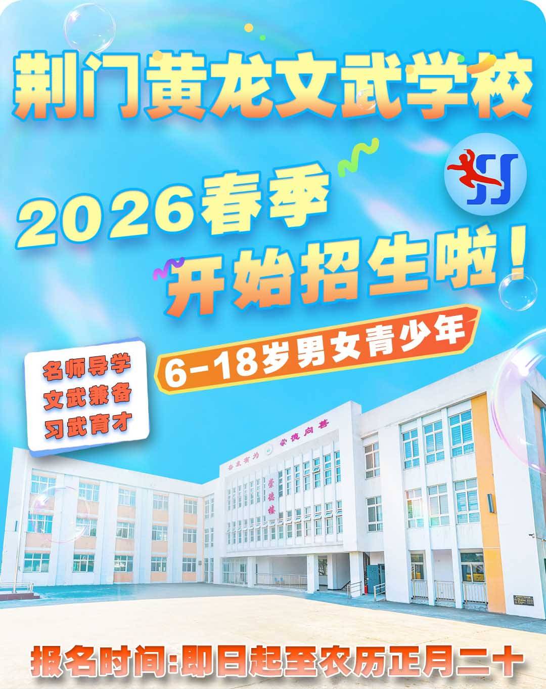 荆门黄龙文武学校作为经教育主管部门批准的全日制寄宿制特色学校,多年深耕文武融合教育,将上述优势转化为实实在在的育人成果。2026 春季招生工作已全面启动,面向 6-18 周岁青少年开放报名,不限户籍,为有需求的家庭提供优质教育选择。选择正规文武学校,不是放弃传统教育的根基,而是为孩子选择一条更全面、更多元、更具竞争力的成长之路,让每个青少年都能在文化的滋养与武术的锤炼中,成长为有知识、有本领、有品格、有方向的时代新人。