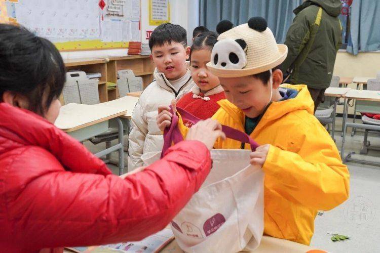 一年级教室变身“我的耕耘丰收季”农场,知识成了能“吃”的果实。萌娃们钻进“语文田”,背完古诗就能收获一根象征聪明伶俐的大葱;在数学果园,答对题目,“苹苹”安安和心想事“橙”就滚进小篮;英语牧场里认出动物卡片,还能赢得鸡毛毽子,寓意“毽”康成长。