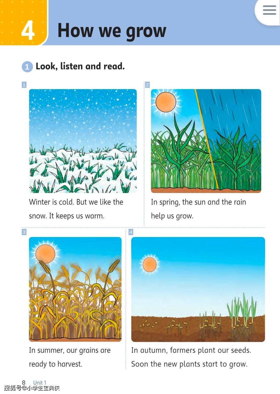 - 四季生长规律:“How we grow” 介绍农作物在四季中的生长变化,让学生理解自然与人类生活的关联,培养尊重自然的意识。