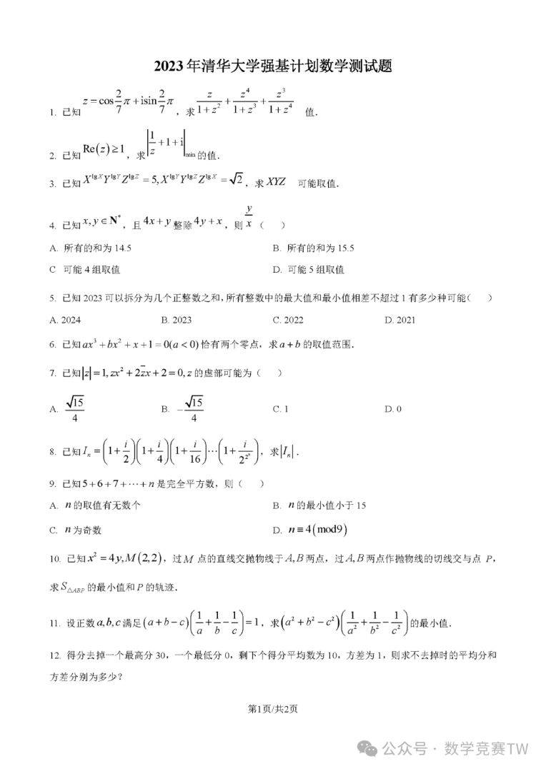 对于志在清华、深耕基础学科的高三学子而言,强基计划无疑是通往理想学府的重要桥梁。作为聚焦拔尖创新人才培养的核心招生渠道,清华强基计划始终以“为国选才”为初心,覆盖理、文多领域基础学科,为学子搭建深耕学术、赋能未来的优质平台。今天,我们整理了分数参考、招生专业、往年面试真题等关键信息,助力大家精准备考、从容应战!