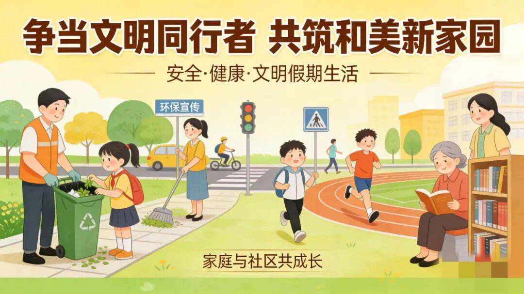 同学们、家长朋友们,让我们家校同心、携手同行,共同为孩子们营造安全温馨的假期环境,助力孩子们在这个假期里收获快乐、收获成长、收获美好,度过一个平安健康、充实有意义的假期!