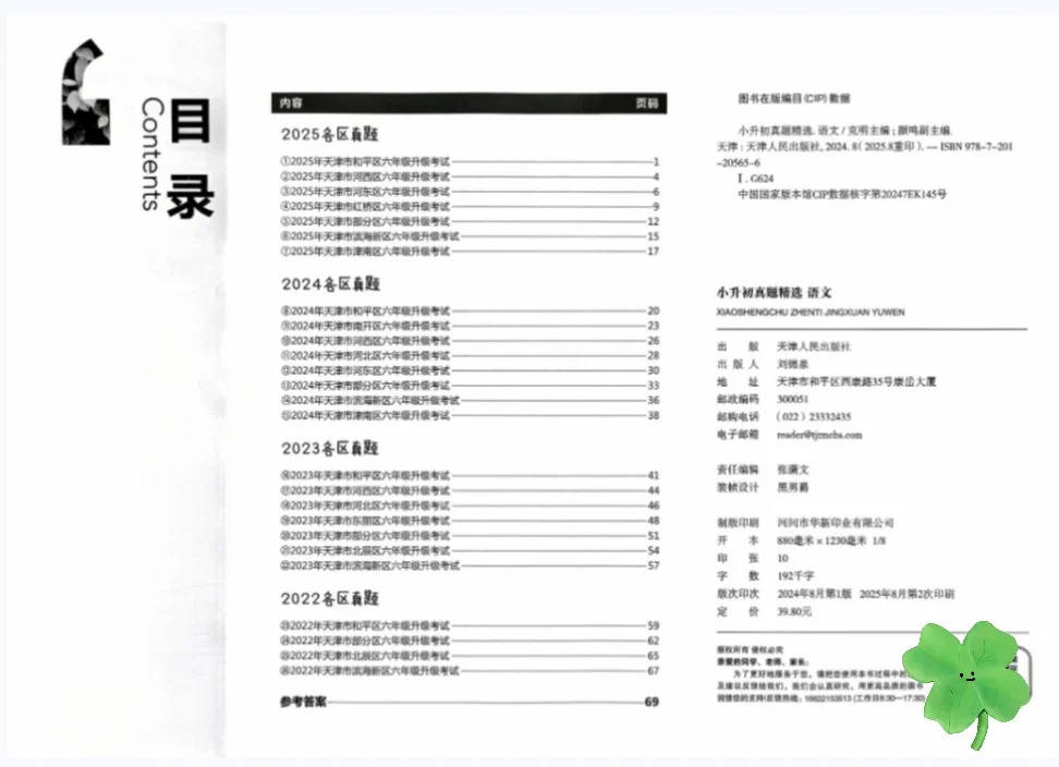 • 实战层:通过 “四年各区真题卷” 熟悉命题规律,比如和平区的新情境阅读、河西区的古诗文默写,提前适应天津小升初的出题风格;