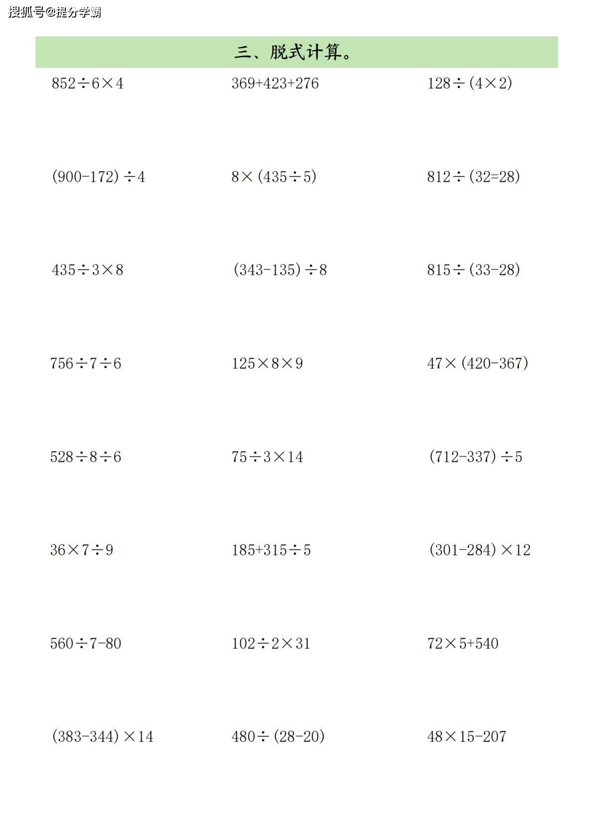 这份练习最大的亮点是 “题型全覆盖,精准抓重点”。它包含了三年级下册数学所有核心计算题型: