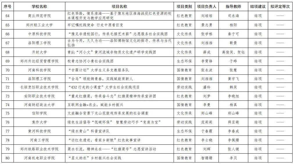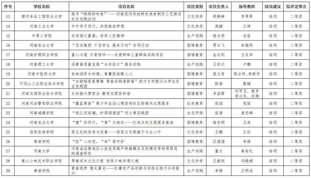 2.河南省第七届普通高等学校“出彩中原”大学生社会实践活动结项申报项目评定结果