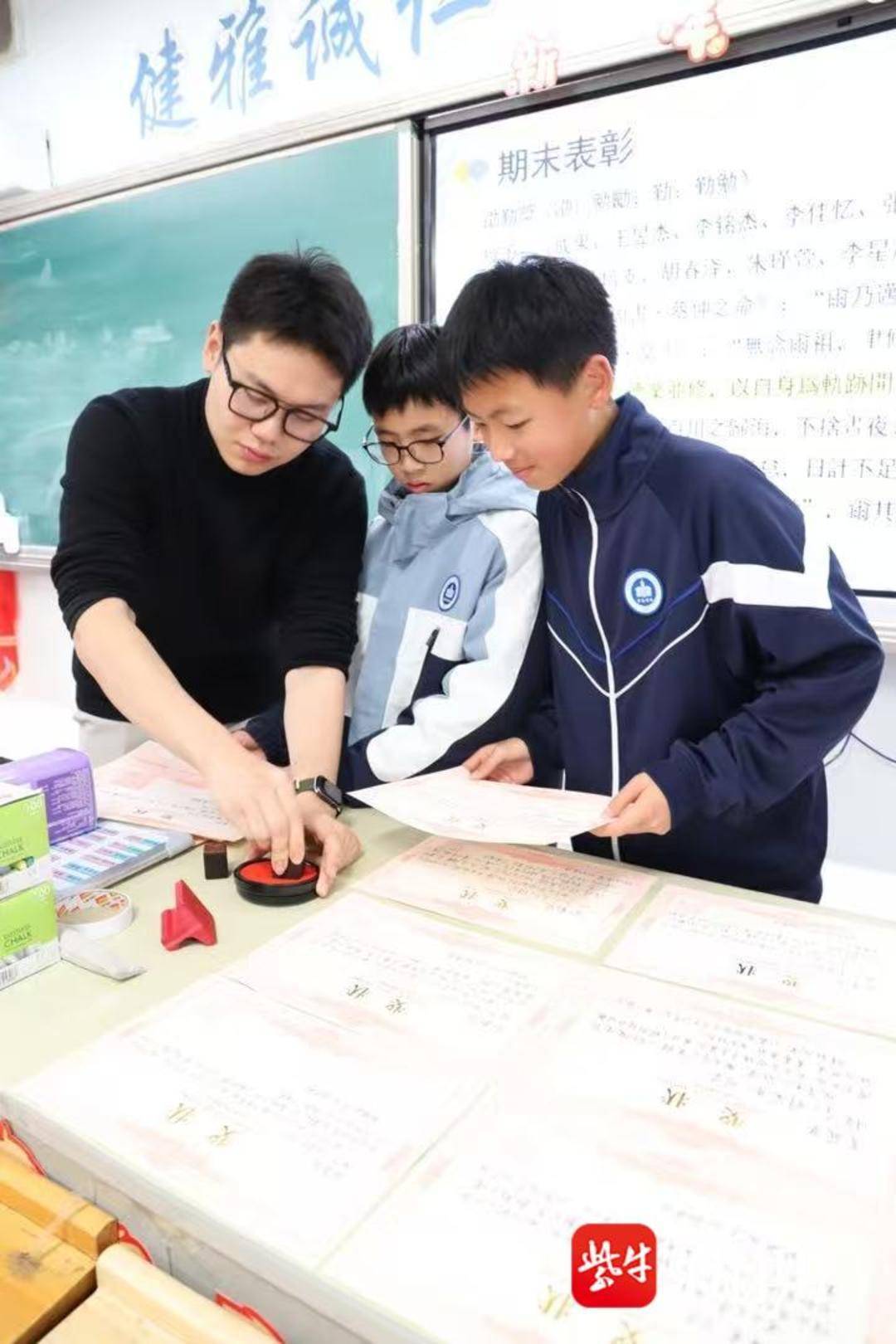 “我本身是语文老师,大学又是古汉语专业出身,就想着用文言文勾勒每个孩子的特质,也让这份奖状多了一层文化传承的意义。”吕嘉珩老师说,他花了近两周时间构思每一张奖状,对照学生的课堂表现、日常细节逐字斟酌,“每个孩子都是独一无二的,我希望他们拿到的是被看见、被读懂的温暖。”
