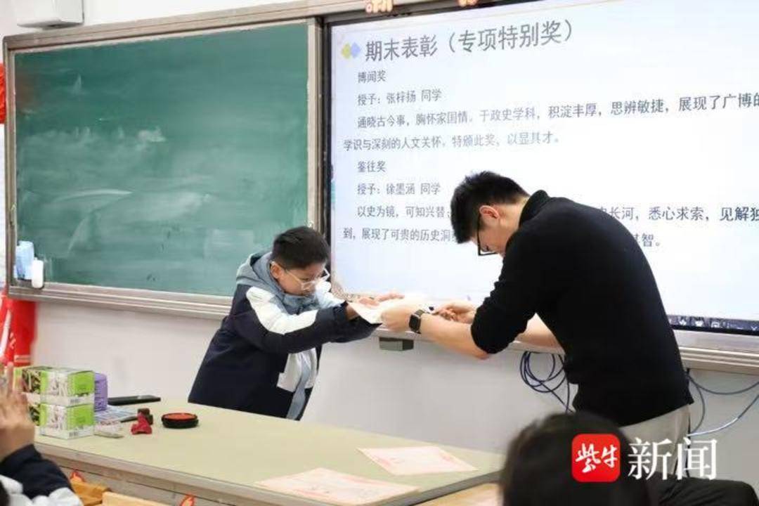 2月5日,南京市金陵河西学校初中部初一5班的孩子们收到了一份特别的期末惊喜——班主任吕嘉珩老师为每个学生手写了独一无二的“文言文”奖状。每张奖状的奖项名称、文言评语,都是为孩子量身定制的“专属”。