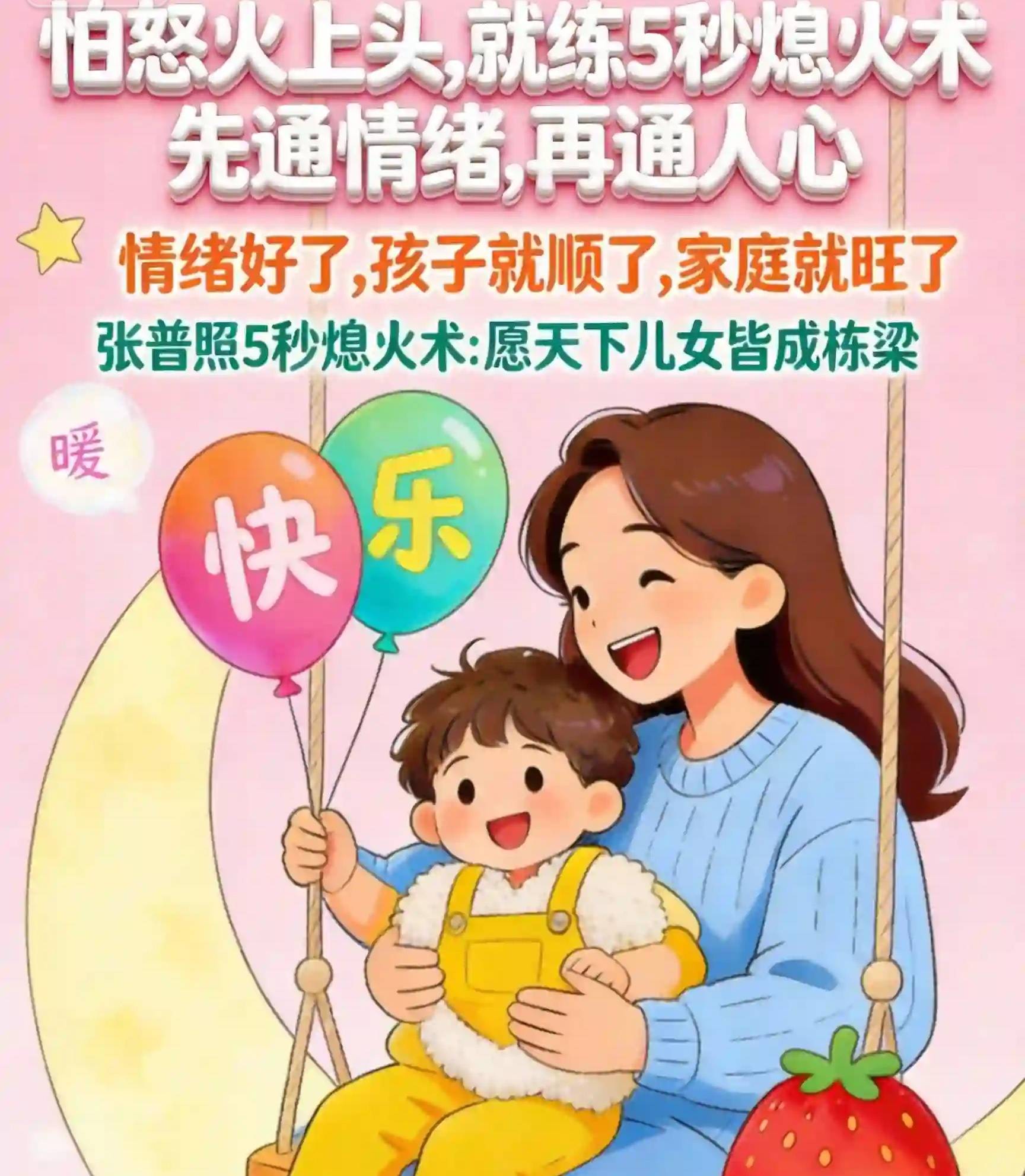 练习 “张普照5秒熄火术” 核心心法。从此,你不再是那个被情绪操控、给孩子留下伤痕的 “施暴者”。你将蜕变成为孩子生命中,最稳定、最安全、最可靠的“心灵守护神”与“情绪榜样”。