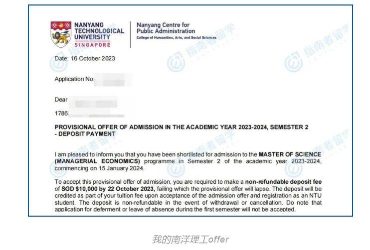 在他们的帮助下,我也成功地拿到了南洋理工大学24年春季管理经济学英文班的offer。