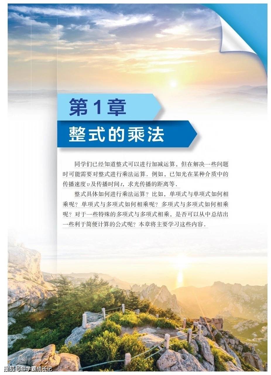 开篇的第 1 章 “整式的乘法”,是我们代数运算能力的一次重要提升。在上学期整式加减的基础上,我们开始学习单项式与单项式、单项式与多项式、多项式与多项式的乘法运算,并从中总结出平方差、完全平方等重要的乘法公式。这些知识不仅能帮助我们快速解决复杂的数学问题,更让我们体会到代数运算中蕴含的简洁与规律之美。