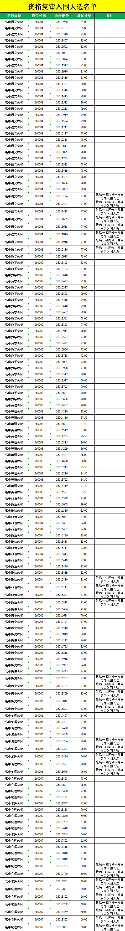 根据《合肥市庐江县2026年面向应届毕业生公开招聘高中教师公告》规定及笔试成绩,现将资格复审入围人选名单予以公布(见文末),并就资格复审有关事项公告如下: