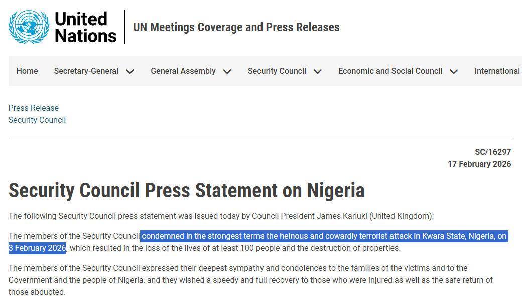 在2月17日,联合国安理会发表新闻声明,以最强烈措辞谴责这一恐袭事件。