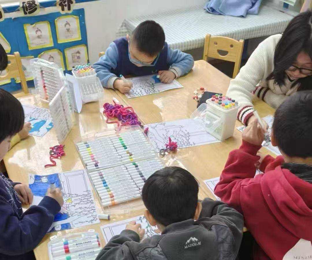 在实践队员的陪伴与引导下,孩子们一步步完成了自己的手工作品。在这个过程中,实践队员们不仅是指导者,更成为陪伴孩子一同探索的同行者。实践队员们俯身观察、耐心陪伴。若见到孩子停顿思索,实践队员们便投以安静的微笑,或轻轻点头,或轻声建议。而当孩子沉浸于涂抹与勾画时,实践队员们便不再出声,只静静立在身旁,偶尔递上一支彩笔。色彩充盈的卡纸,逐渐承载起童真的想象与文化的印记。完成创作后,孩子们有的兴致勃勃地为画作添上新的色彩与线条,有的举起作品与同伴轻声交流、彼此欣赏,也有的小心翼翼地将作品收好,期待与家人分享。本次活动在锻炼其动手与协作能力的同时,更以亲切而生动的方式,在孩子们心中播下了文化传承的种子。