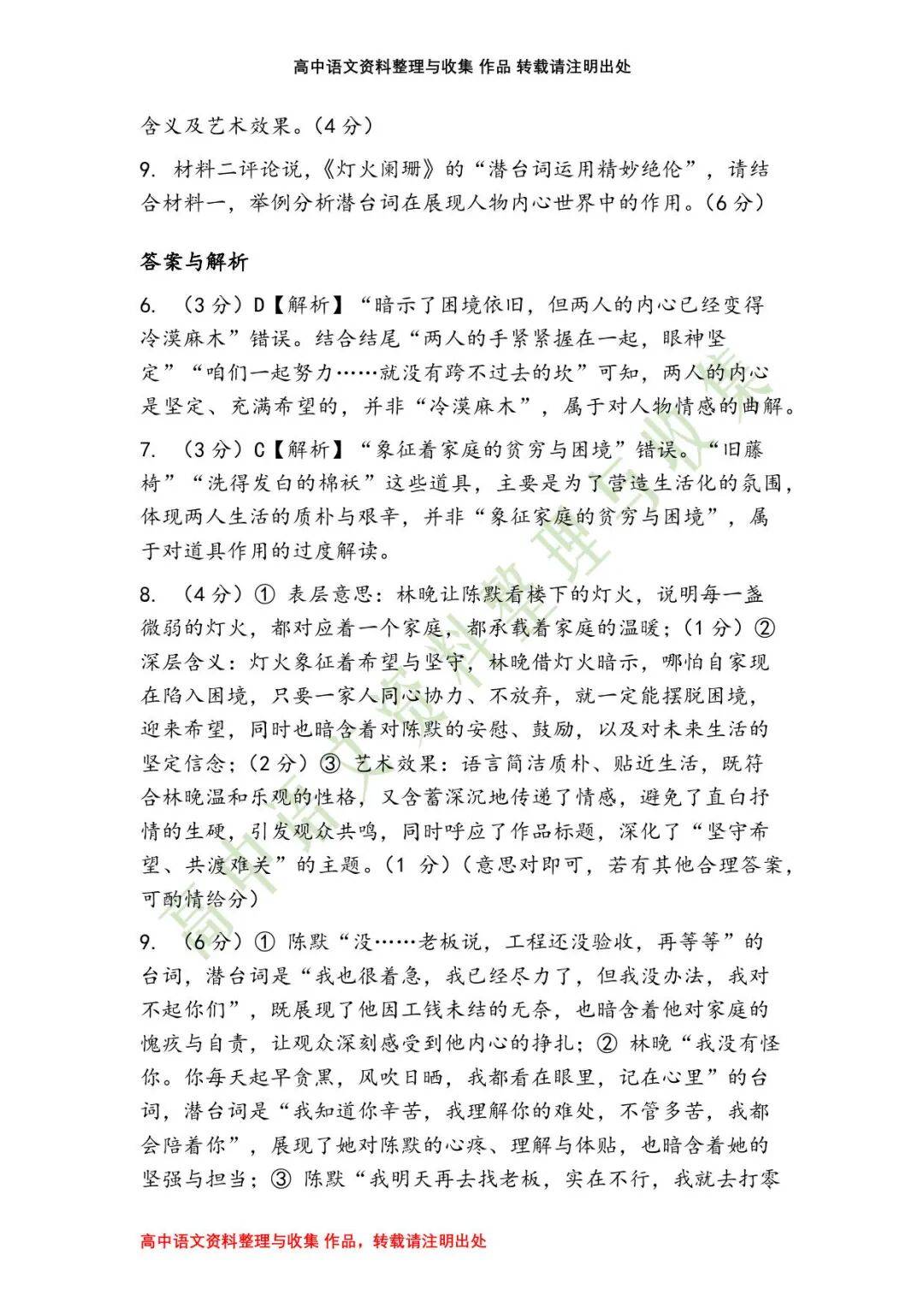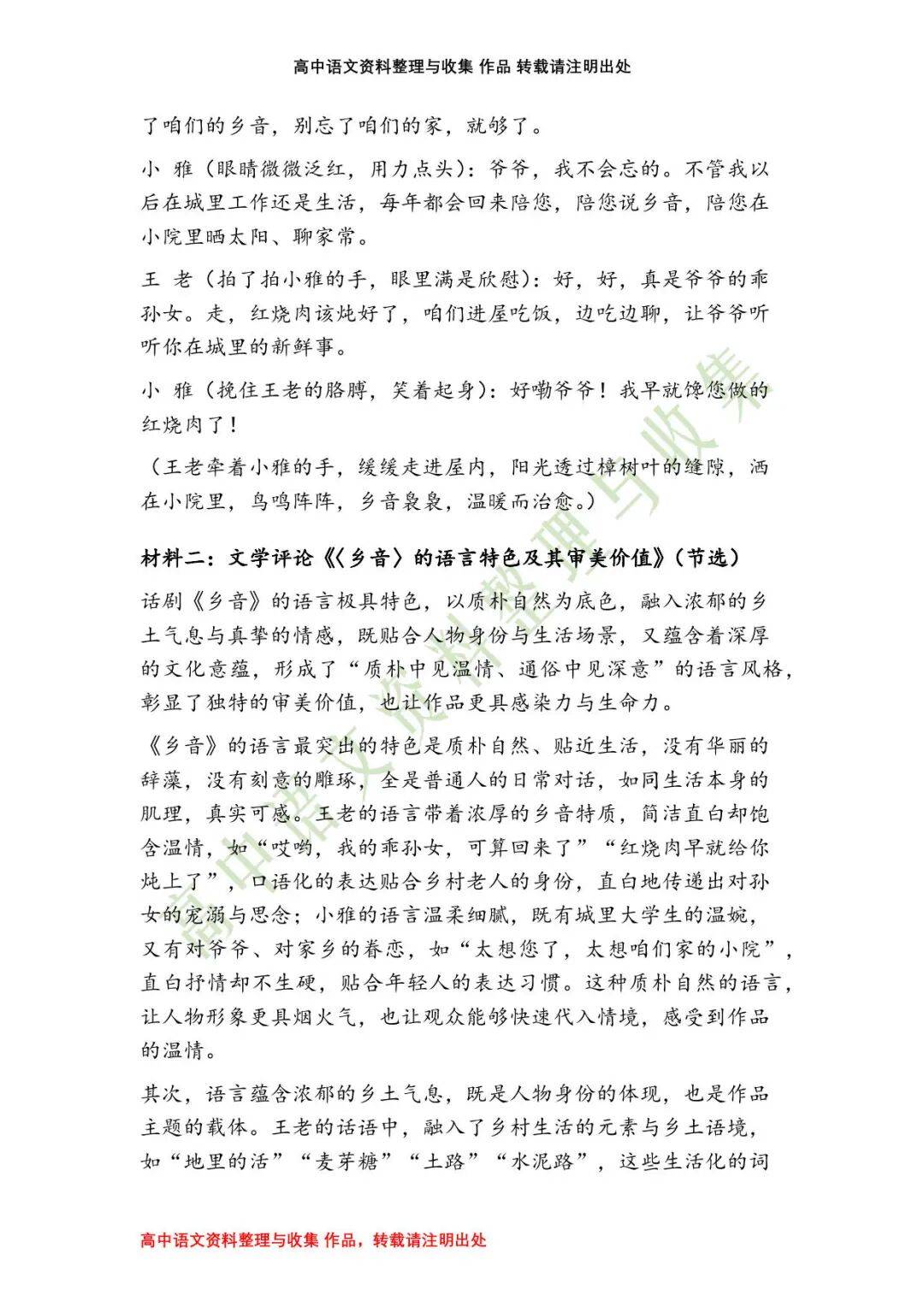 本套试题严格贴合2026届高考模拟联考命题趋势,文本选用现当代经典话剧片段+配套文学评论,每个题型对应1套完整试题(含材料1、材料2),答案+解析详细具体,适配考前专项突破,所有题目均符合联考难度、命题规范,可直接用于学生刷题、教师讲评。