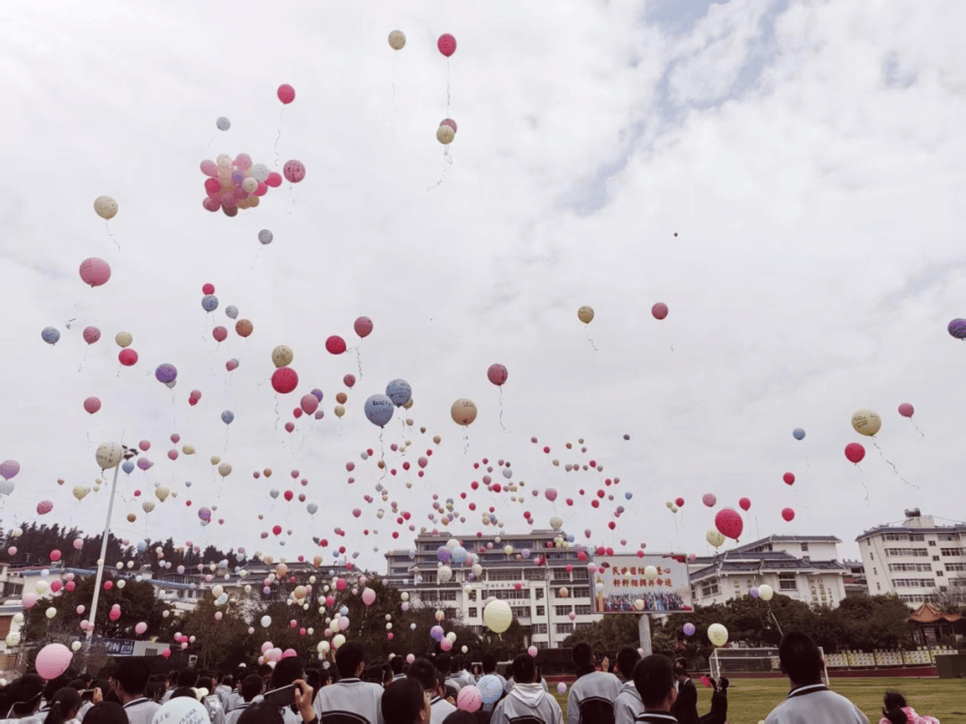 大会高潮迭起,全体师生共同放飞承载梦想的气球,五彩斑斓的气球飞向蓝天,象征着青春梦想的无限可能。随后,全体教师率先穿越成功门,分列两侧迎接学生;同学们手持向日葵,高喊班级口号,跑步穿越成功门,以坚定的步伐迈向未来。