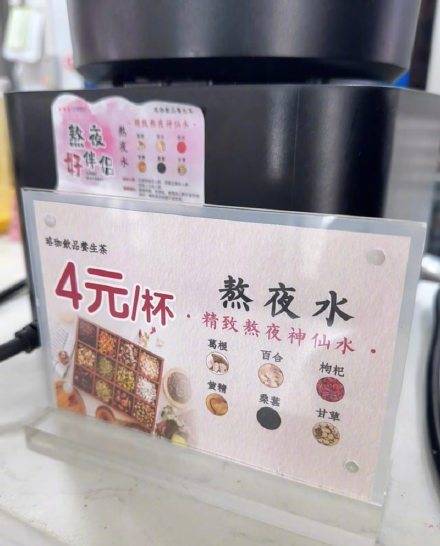 近日,武汉大学枫园食堂一款售价4元的“熬夜水”意外走红。“每天改论文熬到凌晨,这杯是食堂专门为我们熬的!买!”不少学生在社交平台晒出这杯标注着“熬夜好伴侣”的饮品,引发网络关注。8日,武汉大学枫园食堂负责人向记者介绍,他们每天熬制两到三桶,近几天来往往到中午便已售罄。武大食堂4元熬夜水日销百斤 记者了解到,这款饮品由葛根、百合、枸杞、黄精、桑葚、甘草等药食同源材料熬制而成,口感清淡,不额外添加糖分。虽然食堂宣传牌上介绍该款饮品为“精致熬夜神仙水”,但多数学生心态平和,坦言并没有指望喝了它在熬夜后有什么奇效。“就当养生‘小甜水’喝,总比一杯全糖奶茶健康吧。” 也有学生向记者直言,其味道算不上好喝,但熬夜后能来上一杯热饮,食堂考虑得很周到。