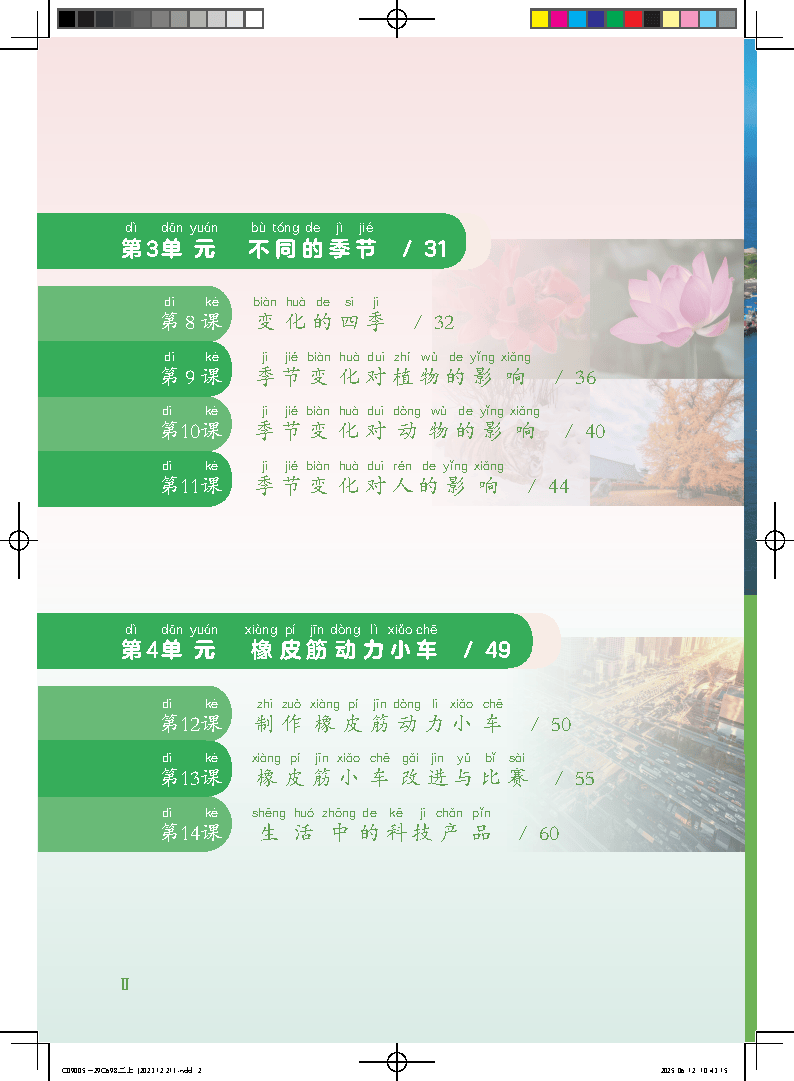2026 秋粤教科技版二年级科学上册新教材,共4 大单元 14 课,围绕空气和水、感觉器官、不同季节、橡皮筋动力小车展开,以观察实验 + 动手制作为主,零基础易上手,适合二年级科学启蒙。