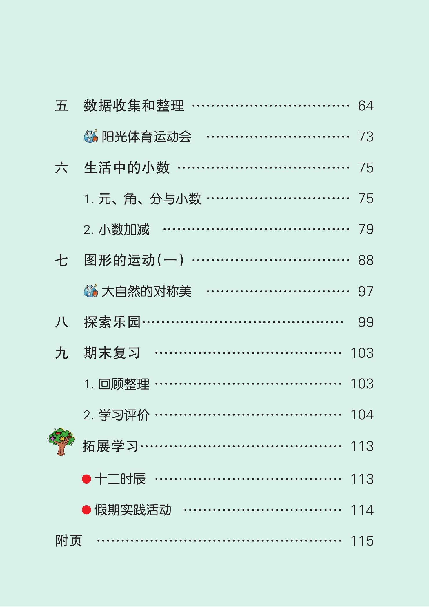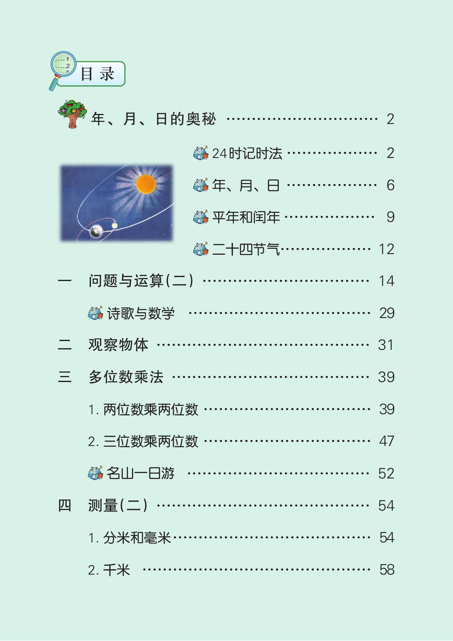 一:2024版最新冀教版小学数学三年级下册电子课本教材目录: