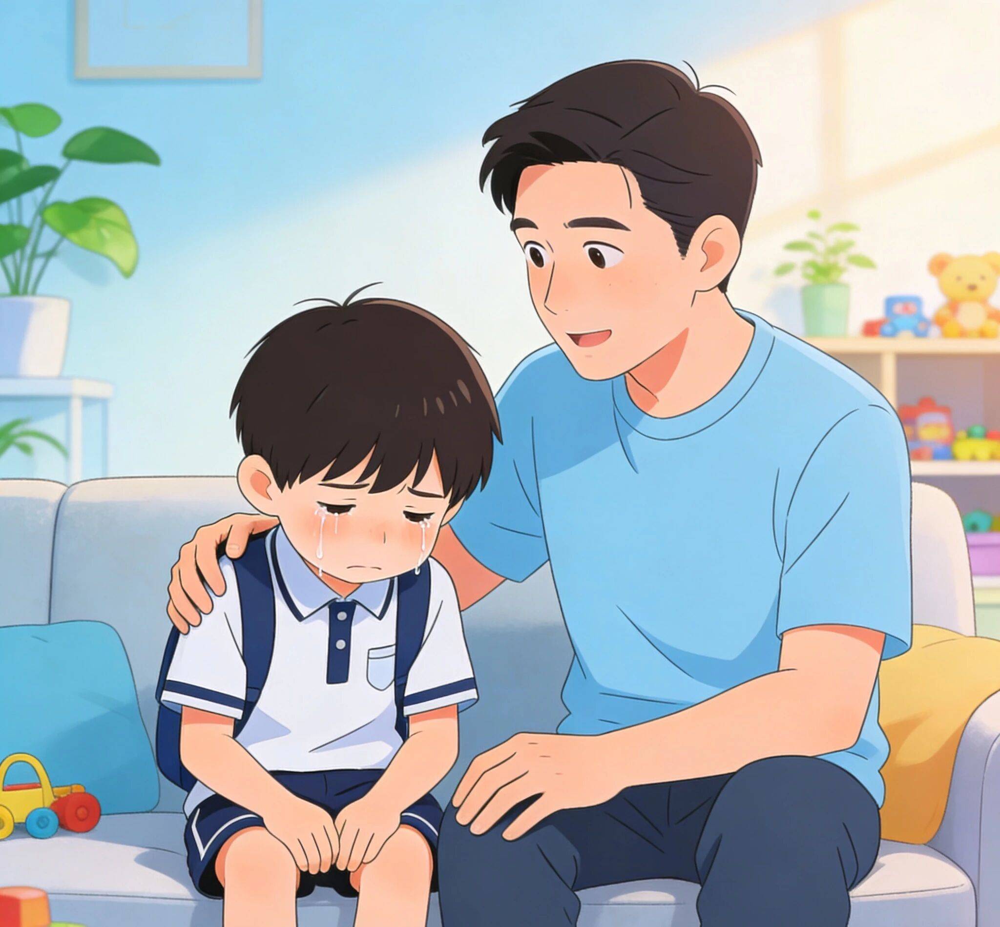 先等一等,真正有智慧的爸爸,会问一下孩子:“可以给爸爸说说到底怎么回事吗?”然后:“感谢你给爸爸说这些,爸爸永远是你的后盾,你有解决办法吗?”最后:“需要爸爸为你出头吗?”。