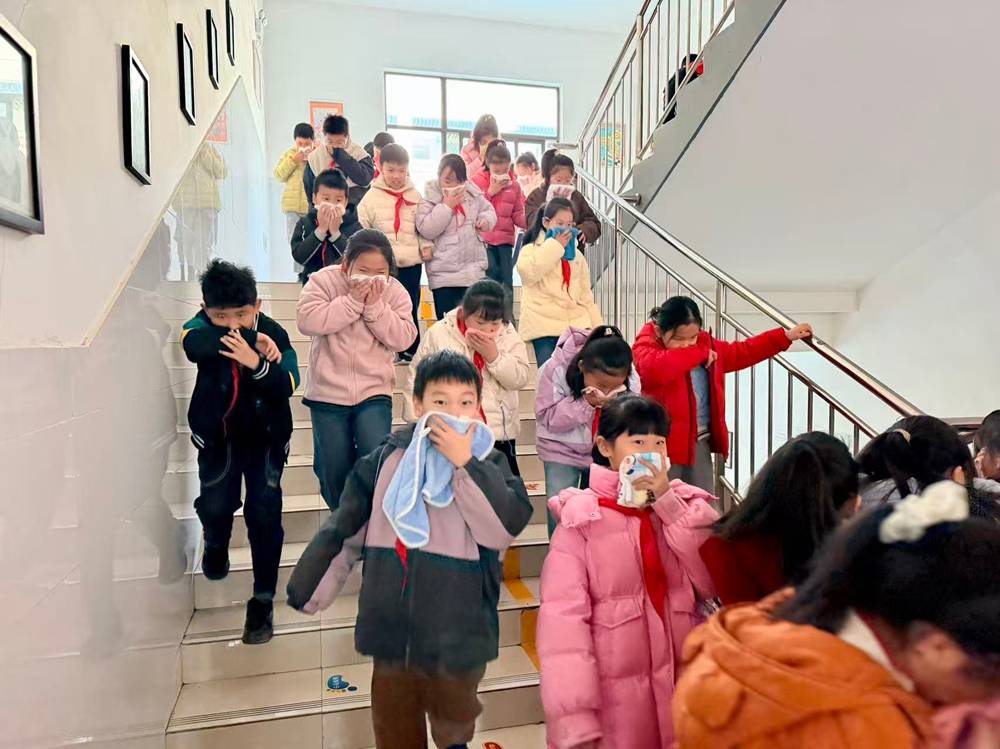 上午十时,随着急促的警报声响起,消防应急疏散演练正式拉开序幕。各班班主任及任课老师迅速到位,组织学生进入应急状态。同学们反应敏捷,迅速拿出潮湿的棉质小毛巾,折叠后捂住口鼻,弯腰低姿,按照预定路线,沿着墙根快速、有序地向安全区域撤离。楼道口、拐角处等关键位置的负责老师不断提醒学生“注意脚下”“不要推挤”,确保整个撤离过程安全顺畅。