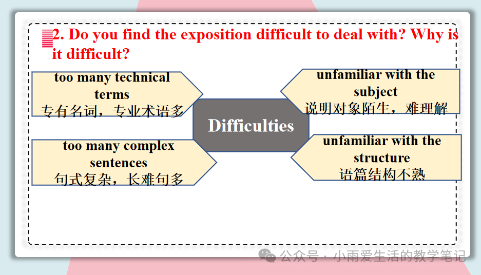 高三英语复习进行到现在,很多同学反映:说明文读不懂、做不对。周老师总结学生们普遍面临四大困难: