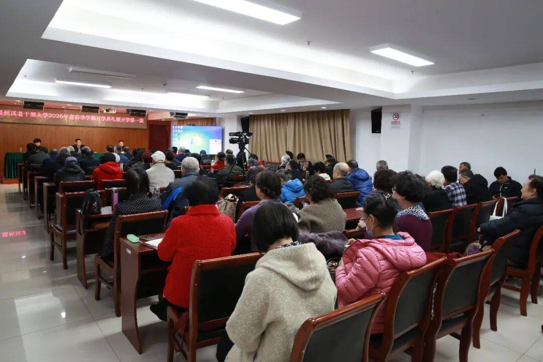 在庄严的国歌声中,开学典礼拉开序幕。通州区老干部大学常务副校长李鲜娜简要回顾了2025年大学的亮点工作,传达了2026年度工作计划,针对课程安排、教师资质、学员管理等方面做了详细说明。