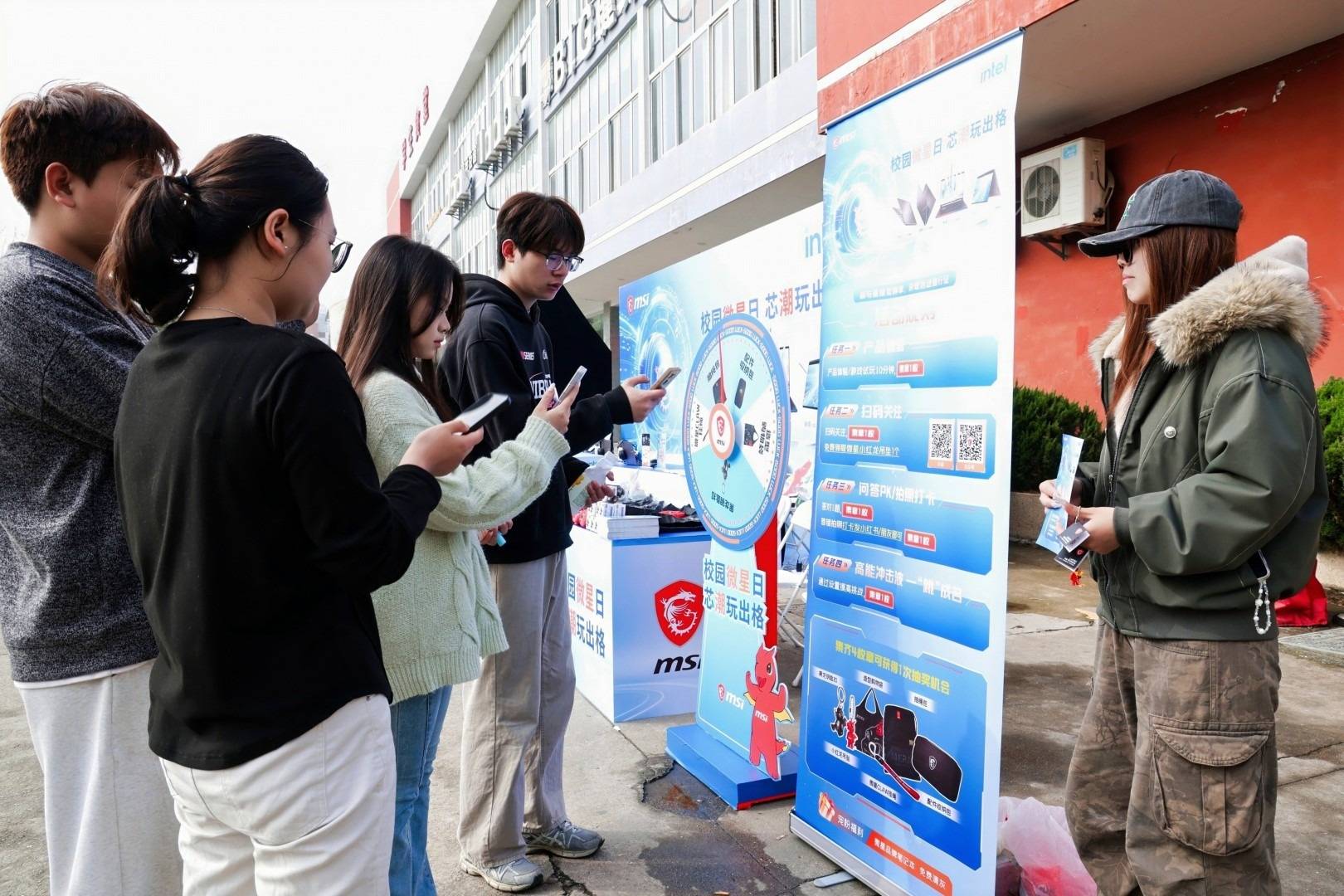 当然,最核心的环节还是零距离的产品体验。同学们亲手触摸、亲自操作,感受微星笔记本的精致质感与极致流畅的画面。最后的抽奖环节更是将气氛推向高潮,微星定制配件收纳包、小红龙吊坠、黑龙钥匙扣等超多周边被幸运儿们收入囊中,引来阵阵羡慕的欢呼。同学们还可扫码了解游戏本全系产品详情,扫码后能获取泰坦、绝影等系列游戏本的详细配置与校园专属购机政策,为学子们购机带来实实在在的福利,不少对游戏本有需求的学子纷纷扫码领券,咨询产品细节。