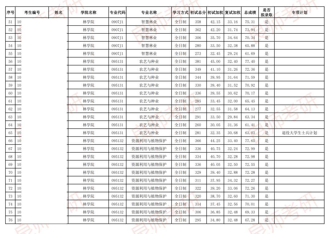 以下为中南林业科技大学26考研一志愿复试拟录取名单(部分)
