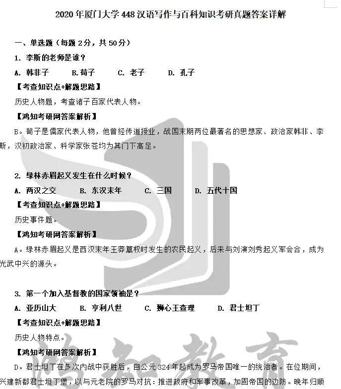 2010-2020年厦门大学448汉语写作与百科知识考研真题参考答案