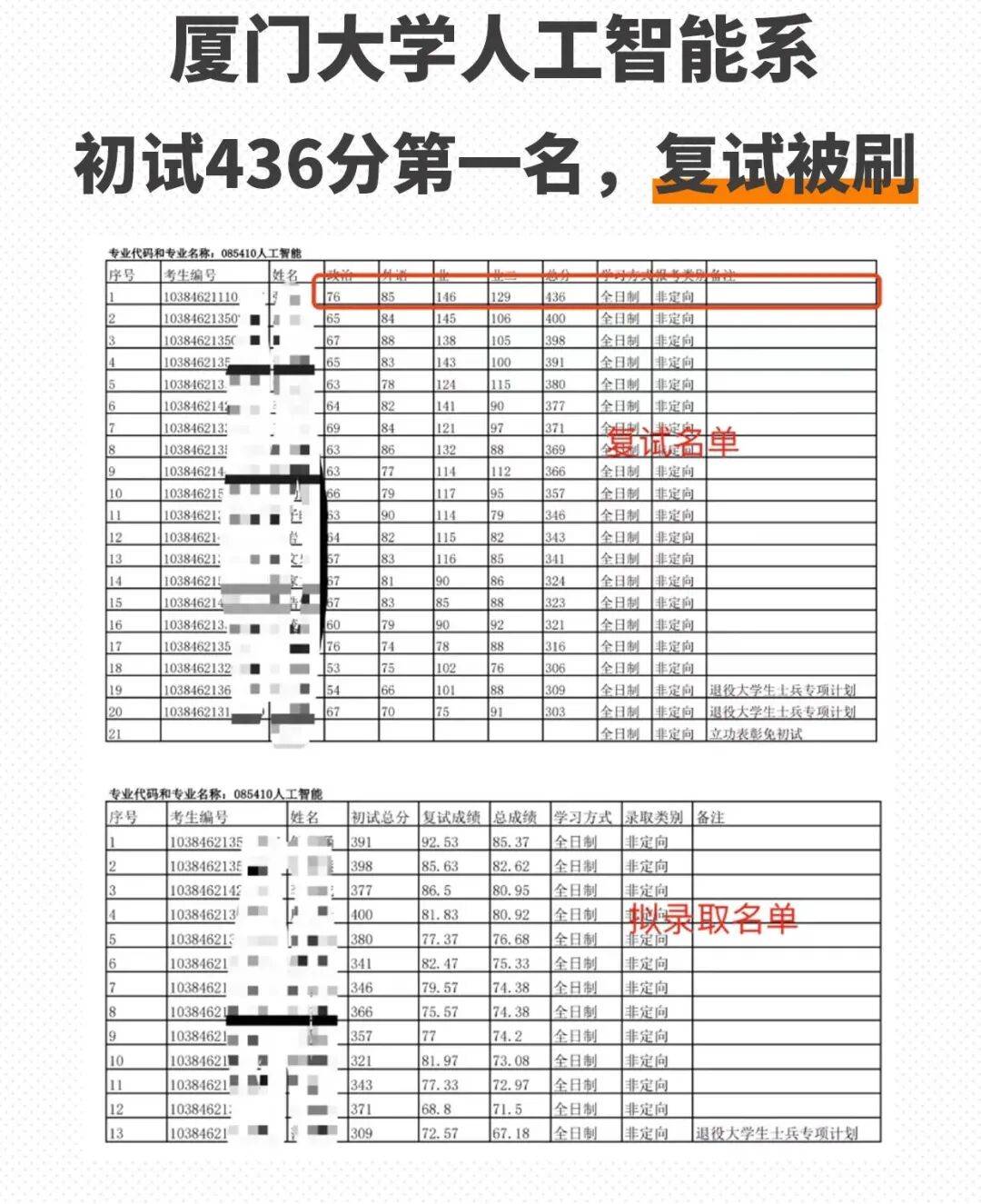 但是最终结果却出乎大家意料,这位436分的考生遗憾被刷,反倒是一位初试成绩仅有321分的考生最终依靠复试阶段的出色表现,最终被厦门大学人工智能专硕录取。