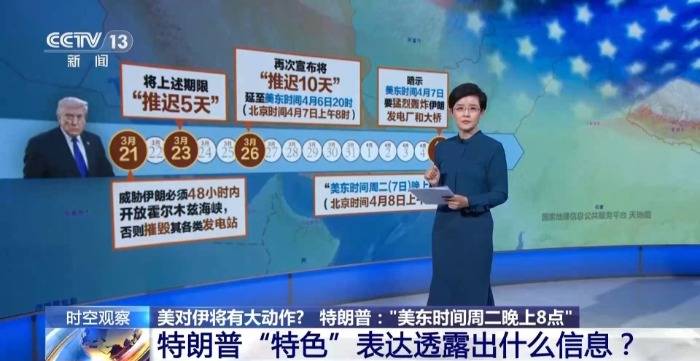 3月21日,特朗普威胁伊朗必须48小时内开放霍尔木兹海峡,否则要摧毁其各类发电站;3月23日,他将上述期限“推迟5天”;3月26日,特朗普再次宣布将摧毁行动推迟10天,期限延至美东时间4月6日20时,即北京时间4月7日上午8时。眼看最后期限临近,昨天,特朗普又再次发出威胁,暗示在“美国东部时间4月7日”要猛烈轰炸伊朗的发电厂和大桥。