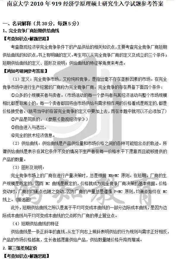 1994-2024年南京大学919经济学原理考研真题参考答案