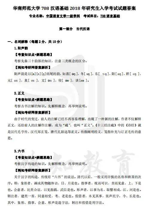 2021-2023年华南师范大学708古代汉语考研真题答案详解