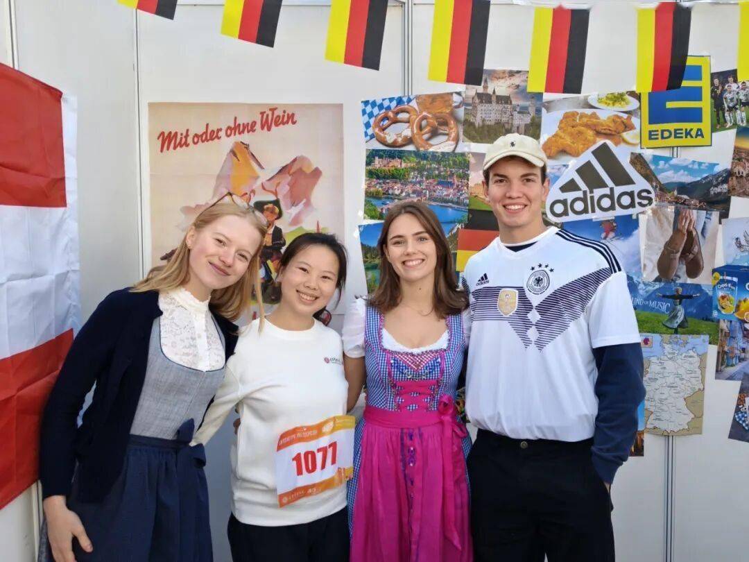 在全英文授课的环境中,沈思彤如鱼得水。这得益于她从小扎实的英语训练。然而, 语言的流畅只是基础,真正的挑战在于跨文化的理解与协作。选宿舍的时候,她本可以和中国同学一起,但她想试试开盲盒,看看会跟什么样的同学住在一块。她很开心地“开”到了一位塞尔维亚舍友,她形容和舍友的交流是一种愉快的“和而不同”。而这种“和而不同”的体验,在小组作业中也体现得淋漓尽致。上学期,她和几位德国同学组队做小组作业。“真的能感觉到德国同学那种严谨认真的劲儿,”她回忆,“我们约了八点去教室排练,我准点到时他们几个人已经齐刷刷坐着等我了。”队长是大四的德国同学,从头到尾掌控进度。“她会有一页PPT专门告诉大家字号、字体大小的标准。论文写完后,也会多次开会和大家一起互相检查语法错误。”她坦言,从这种“和而不同”中收获了许多。