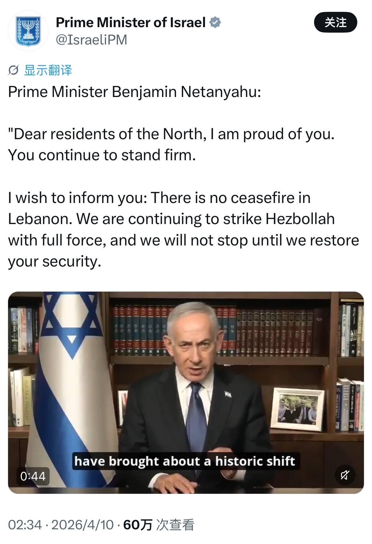 以色列方面,4月9日和10日,以色列总理内塔尼亚胡连续在社交媒体发文称,“黎巴嫩不在停火范围内”,以色列“将继续全力打击黎巴嫩真主党。”
